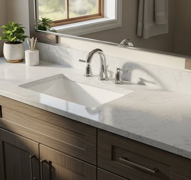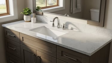 60" or < Vanity Quartz Countertop with Lavatory Sinks Mounted.